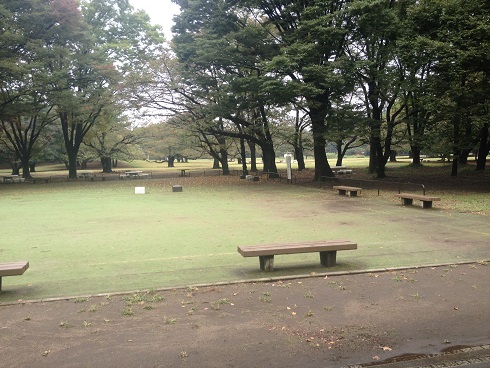 光が丘公園芝生広場には、しっかり雨を凌げる休憩所があり