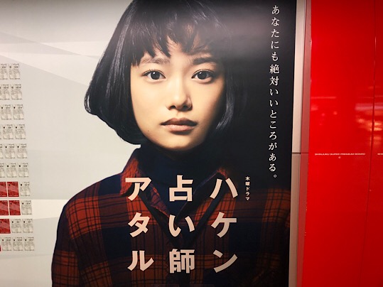 1月17日木曜夜1900からスタートの新ドラマ ハケン占い師アタルの広告が新宿駅地下通路のスーパーパノラマ広告で大々的に