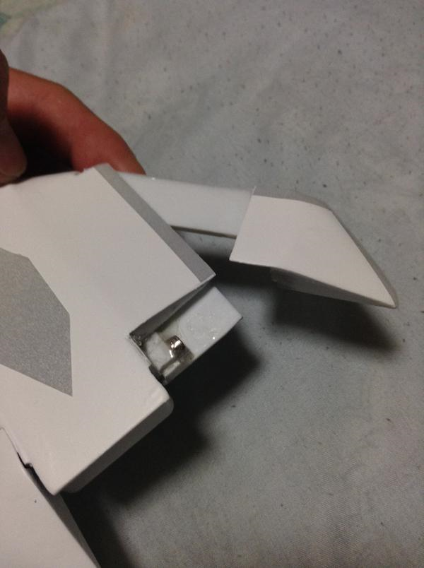 ウイングはネオジム磁石で固定。衝撃を受けると閉じるので、シュート後はウイングを閉じて防御態勢に自動変形できる!