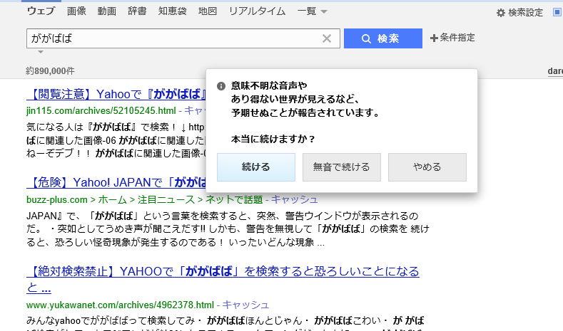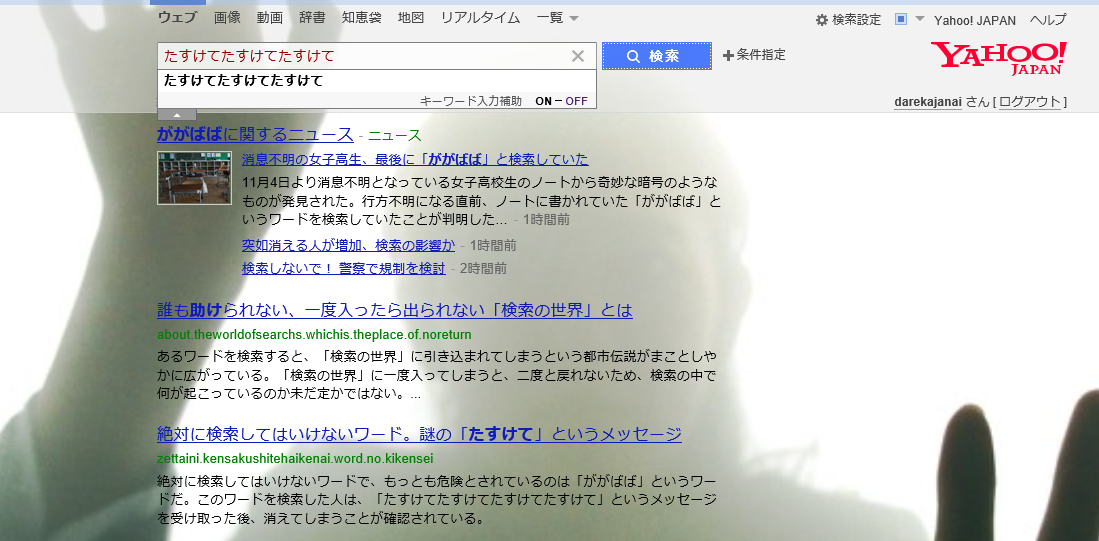 Yahoo!で検索すると、恐怖の異世界に引きずり込まれるという噂が流れています