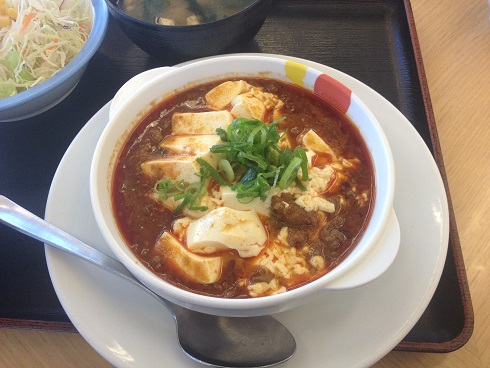 定食は、ご飯、サラダ、味噌汁……そしてメインの麻婆豆腐のセット