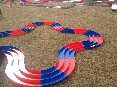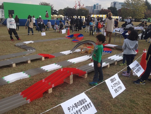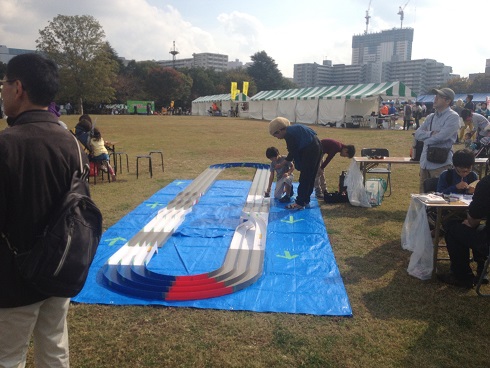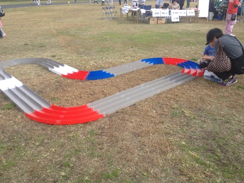 高速立体では、体験会で組み立てたばかりのノーマルマシンを走らせる子供たちが……いや、そのマシンでこのコースは鬼畜でしょ!