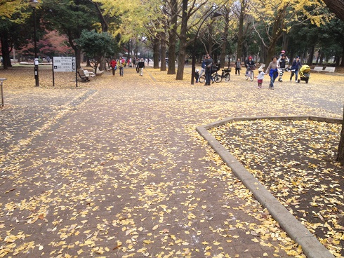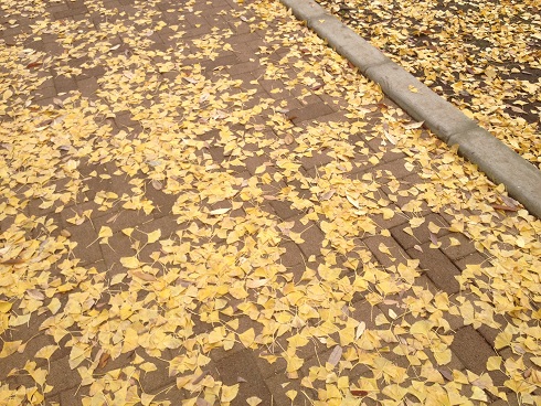 やたらと多い銀杏の葉を踏みしめて芝生広場へ向かいます