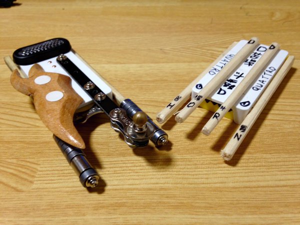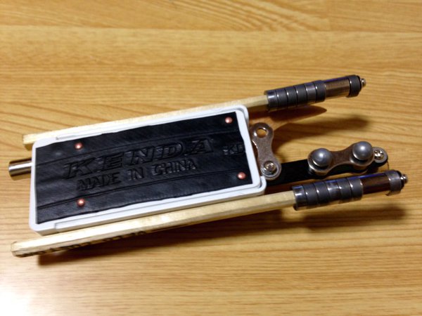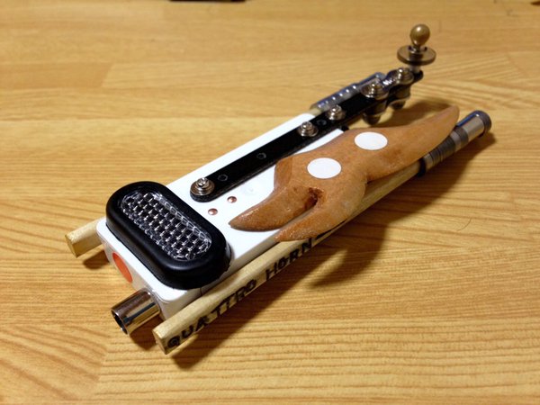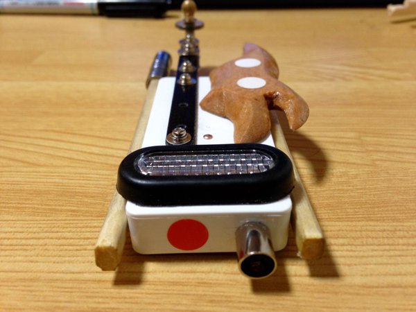 サイドには割り箸を自転車パーツの廃材であるチェーンのコマで武装した角を