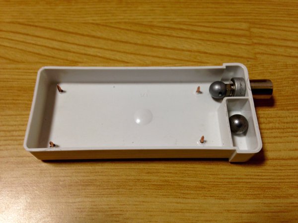 ラバーを貼りつけたシャーシの四隅にブロンズピンを打ち込むことで
