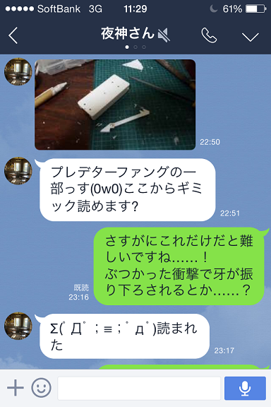 フリップゴッドクイズの答え!!! コメントを残す Tweet Pocket フリップゴッドクイズ!君は分かったかなぁ? 夜神さんの機体、プレデターファングの製作中の画像。ここからどんなギミックが予想される? さぁ、正解は!!! 『ぶつかった衝撃で、牙状のパーツを振り下ろす』でした!!! 正解の方はおめでとうございます!1億万ポイントゲットです! 不正解の方は残念でした、また次のクイズにチャレンジしてください! それではまた次回!!