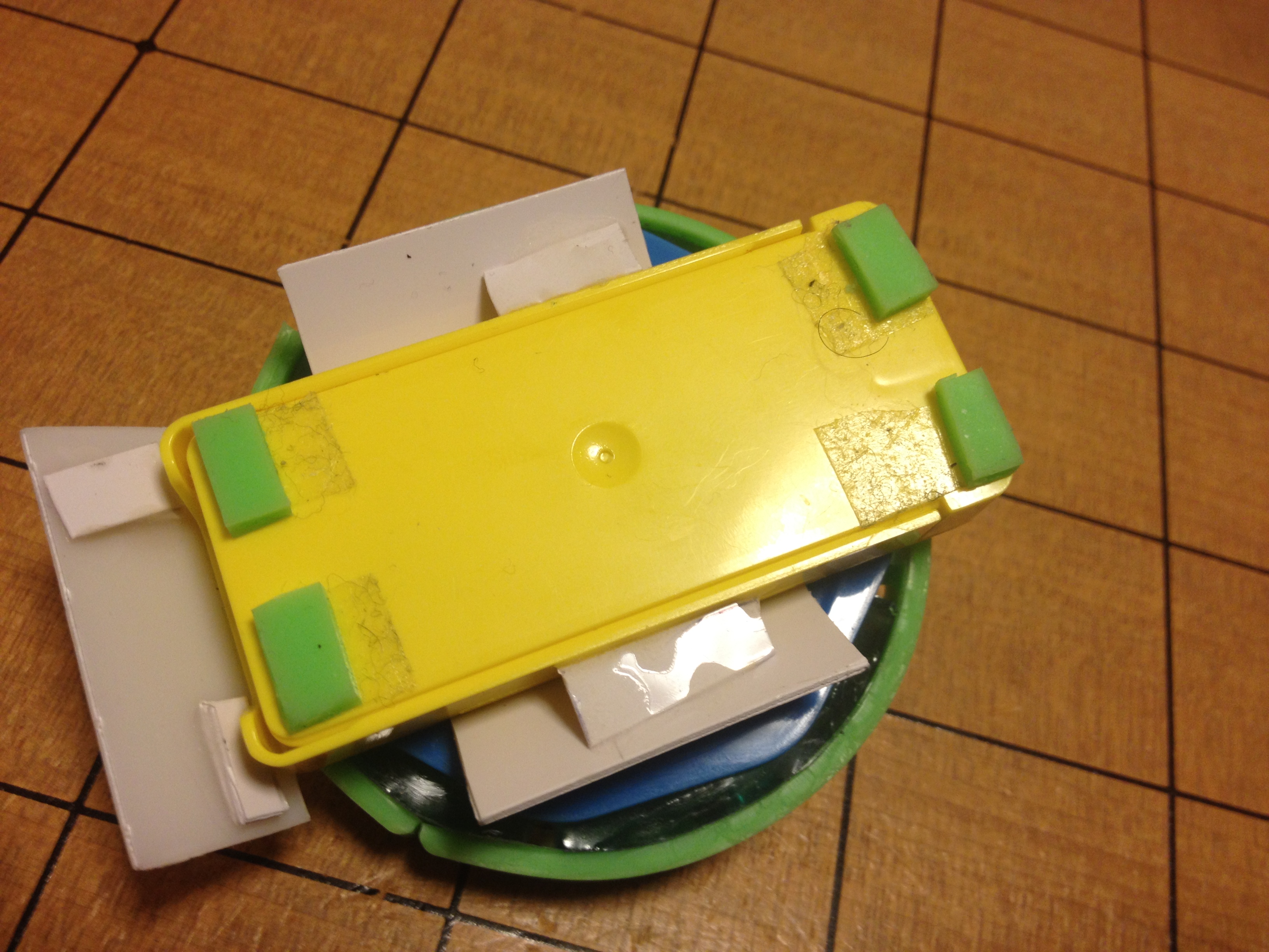 ハンマ君製フリックス「トルトゥーガ」 コメントを残す Tweet Pocket 傍若歩神、スプリングインパクトに続いて、ハンマ君がロールアウトする機体はこれだ! 不動の大亀!『トルトゥーガ』 最大の特徴は、カメの甲羅のような円盤! この円盤は、二層構造のラバーでコーティングされており、ショックを完全に吸収する! 更に、この円盤は回転するのだ! アッパー形状のフロントとサイドで相手を掬い上げつつ、円盤で完全に受け流す! シャーシは、四隅にラバーを設置しており、グリップ力を稼いでいる! シャーシで踏ん張り、ボディで受け流す!この防御に隙は無い! 実際に敵機の攻撃を受け流している様子がこれだ!