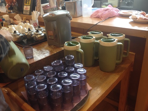 お茶はやかんに自分でお湯を入れてから注ぎます
