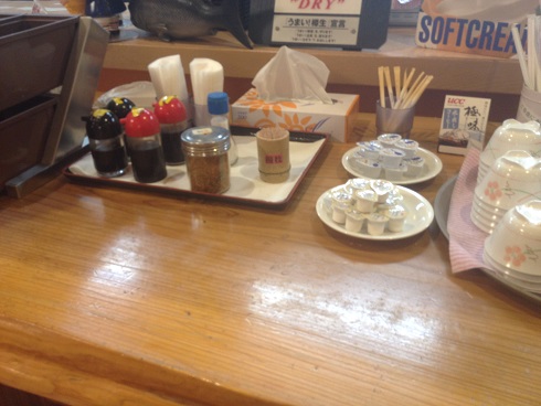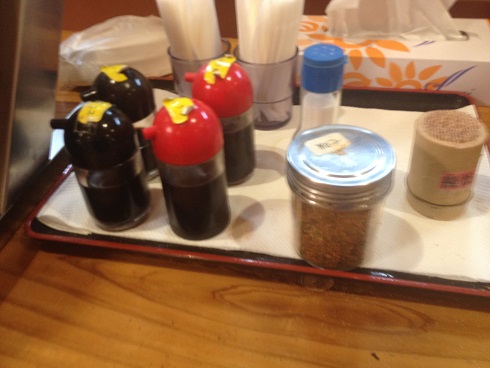 調味料は食堂側に完備されているので、料理を受け取った時にかけるようにします