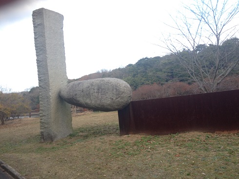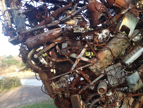 奇妙なオブジェを横目で見ながらマシンと一緒に走る走る