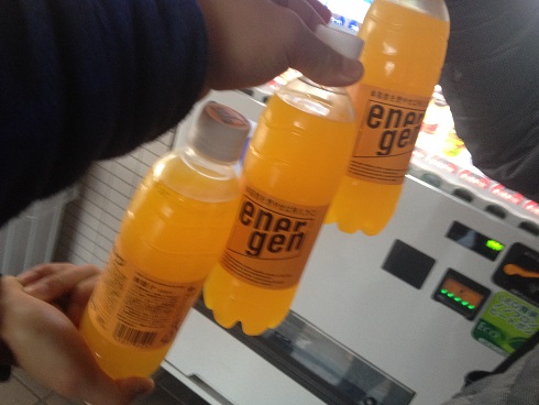 なぜか自販機に売ってあった懐かしの『エネルゲン』を三人そろって購入