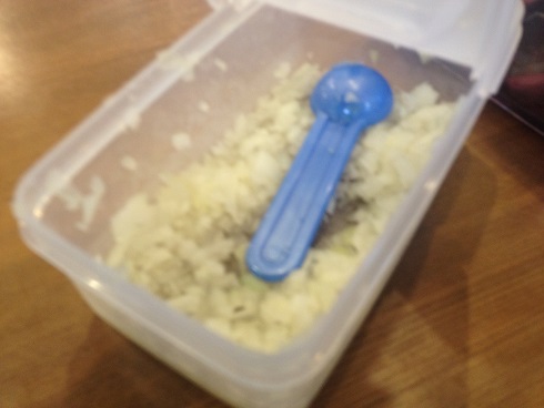 玉ねぎをある程度入れ終わった後は店員が持って行った所ですね