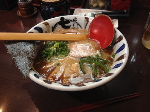 青葉台七志らーめん レビュー コメントを残す Tweet Pocket たまプラーザ駅近くにあるラーメン屋です お冷の代わりに、特製のお茶『七志香茶』があります これがまた香ばしい!食べたラーメンの油を分解する効果もあるのかな? 調味料 胡椒やニンニクなど、自分ですりつぶす系の調味料が多くて、ちょっと楽しいです 客席から調理台が見えます 店員はとても良い人たちです 七志らーめんを頼みました やはりオーソドックスにね! 焦がしニンニクの効いたスープが美味しい! あとコリコリした緑の海藻?みたいな具も美味しいですね メンマは、メンマと言うよりもタケノコ!って感じで、とにかく具が個性的!!