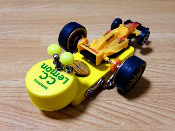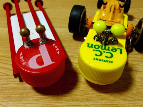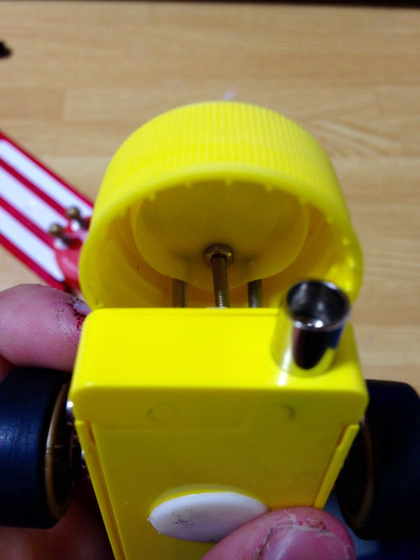 ペットボトルのキャップをネジ止めで固定してある