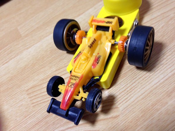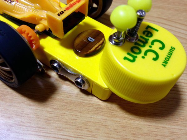 シャーシはセンターにウエイトと リヤにメタルボール、マフラーを装備したスピンシャーシ