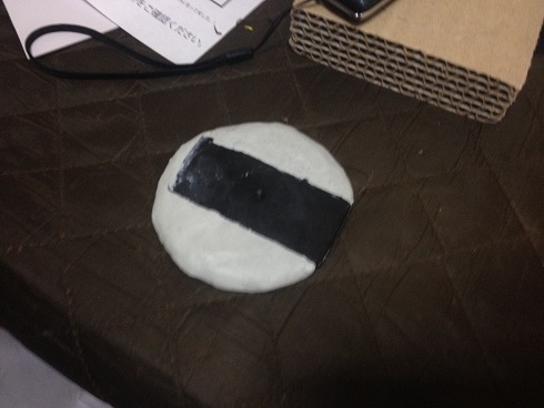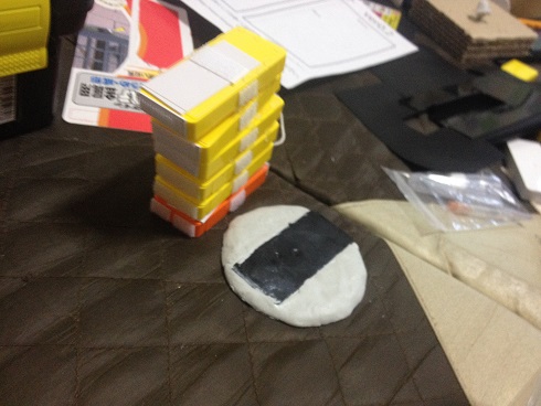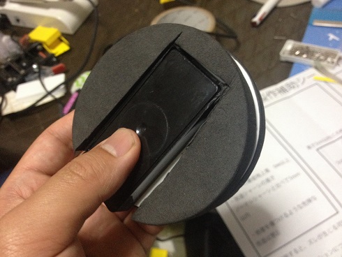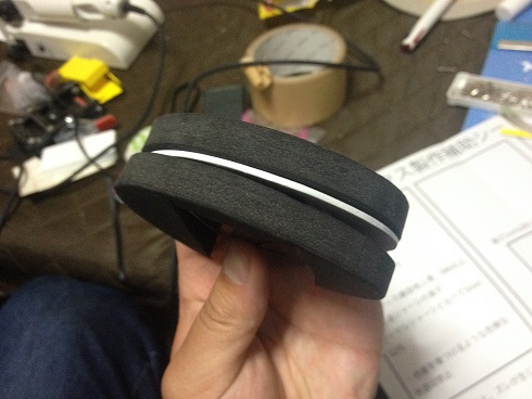 そして、ABS板を円形に切り取ってその上に貼り付けて、その上に更にスポンジを……