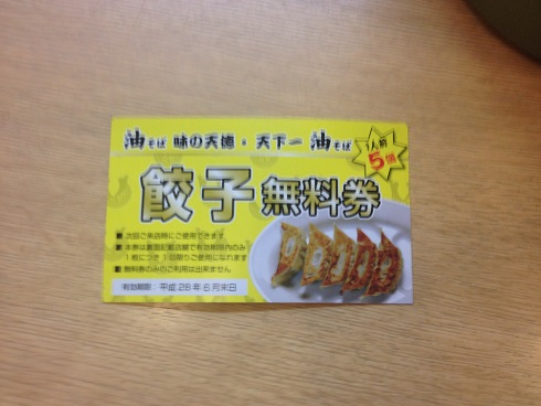 天徳 餃子無料券使ってみた コメントを残す Tweet Pocket 柿生駅南口から徒歩数分の所にあるあぶらそばの店『天徳』 そこでは、個人、グループ問わず1000円以上の注文をしたら餃子無料券がもらえます 個人で1000円以上の食事する事は滅多にありませんが 友達と行けば確実に1000円は超えるので、一人で行くよりも誰かと一緒に行った方がお得なお店ですね カリカリの焼き餃子 ユージン的には直接ラー油などをかけるのが好み 中に肉がぎっしり詰まってます! お友達と柿生に遊びに来たら、ぜひ天徳へ!!