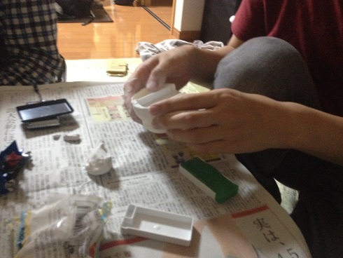 ほうじ茶さんも紙粘土をちょっともらって専用のウェイトを作成
