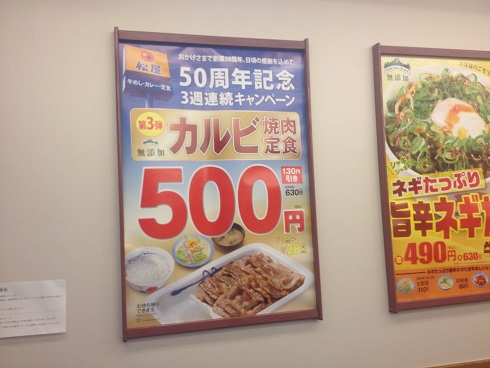 松屋50周年記念カルビ焼肉定食500円 食べてみた コメントを残す Tweet Pocket 3週連続キャンペーン! カルビ焼肉定食 カルビソースをたっぷりかけていただきましょう ま、最終的には丼にしちゃうのが一番美味しいんだけどね! 肉汁はすべてご飯へ吸収させるのだ!!