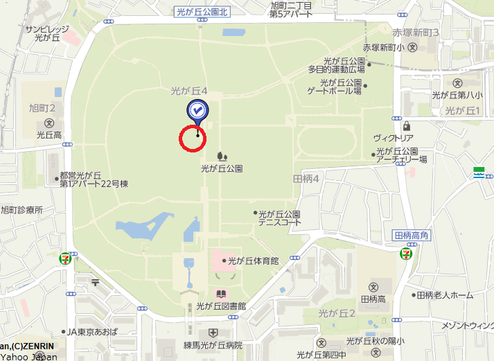 東京都練馬区光が丘公園 芝生広場の第3休憩所付近