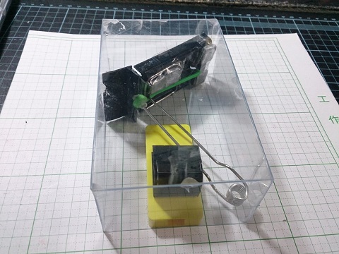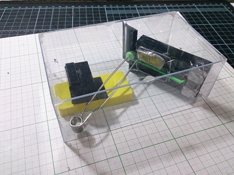 ブルコサミンのキックバネを、垂直に装着する事で力の方向を前に向けて、ロック方式もバンキと同様にすることで発動率を安定させた!
