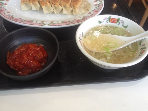 餃子の王将 餃子定食食べてみた コメントを残す Tweet Pocket 数年前、鶴川に出来た餃子の王将に行ってきました 調味料 ポンプ式のラー油が面白い 餃子の王将と言えば、餃子定食でしょう! 中華スープとキムチ そこそこな量のご飯 メインの餃子 酢を多めにして、ラー油と醤油を追加するスタイル まぁ、普通に美味しかったです 焼き餃子は香ばしくていいね