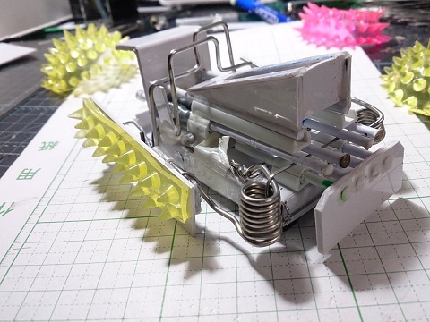 らいおんさん製フリックス「パウザー」 コメントを残す Tweet Pocket 超凶悪ギミックを搭載した機体が登場だ! 一見すると何がなにやら分からない複雑な機体! 複数のギミックが搭載されているぞ! 前方のトリガーパーツに衝撃が伝わると、クローロンと同形状のギミックが後方へ発動 その勢いを利用して、左右に装備されたアリスギミックが発動! 攻撃するのは片側のみだが、反対側も発動させる事で反動を殺している ただし、この複雑な機構を搭載する事によって、重量オーバーしているぞ! 試合ではペナルティとしてHPが-2されるぞ 一撃も食らう事は許されないが、それでもこの攻撃力は心強い!