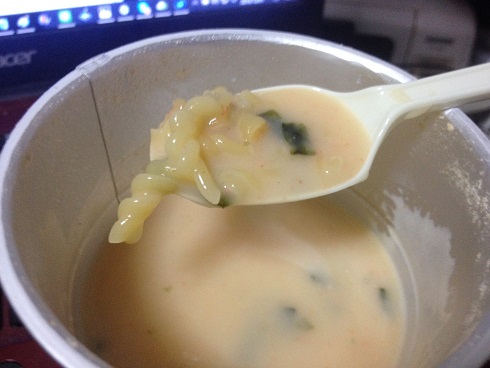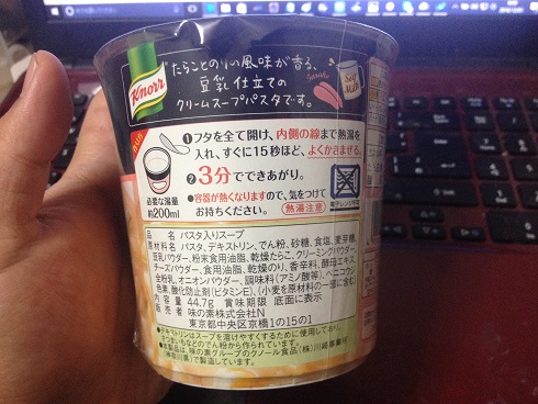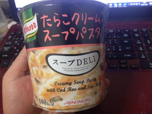 スープDELL たらこクリームスープパスタ コメントを残す Tweet Pocket 夜中、ちょっと小腹がすいたときに 中身 パスタと言ってもスパゲッティが入ってるわけじゃなく マカロニっぽいのが入ってるだけです まぁ、パスタってそういうのの総称ですからね 蓋の裏には作り方が乗ってます フタは全部はがす! と強調されてます カップ麺とはちがうようですね たらこクリームがしっかりと溶け合ってます マカロニはしっかり熱しないと芯が残っちゃいます
