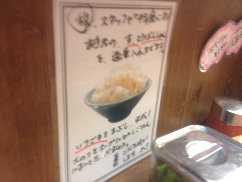 武蔵家 国領店 行ってみた コメントを残す Tweet Pocket 横浜家系ラーメンの武蔵家、国領支店に行ってみました! ライス無料に魅かれて! おかわりとは書いてないから一杯だけかな? ラーメンはごく普通……だけど、チャーシューがちょっと大きい? 美味しいライスの食べ方! お酢と豆板醤といりごまをかけて、スープに浸した海苔で包む! あと個人的に、キュウリの漬物も ご飯とこいつがあると嬉しくなる僕って、つくづく日本人だな