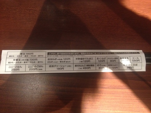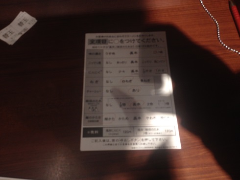 そして、入り口に立っている店員に渡されるオーダー票に好みの味付けを記入します