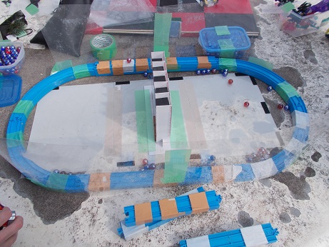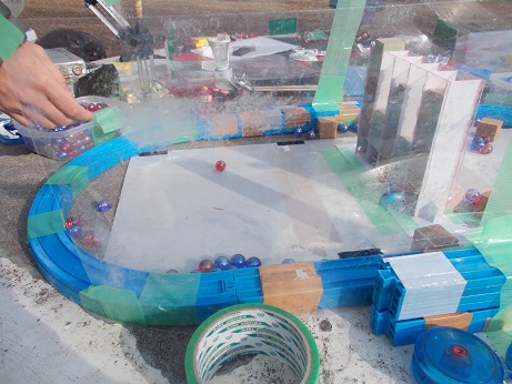 picoさんが自作でブレイクボンバーを作ってくれたので、僕の持ってきたプラレールレールをフェンスにしてプレイ!