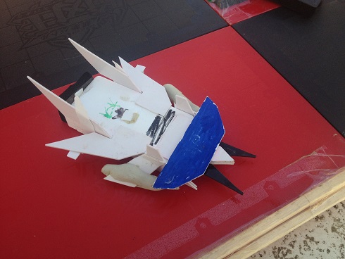 しゅんくん製フリックス 「ガルーダ」 コメントを残す Tweet Pocket 第1回フリックスコンテストの優勝者、らいおんさんに渡されたインフェリアシリーズ3種 それがharrycsさんに渡され、そしてそのパーツを使って小学1年生のしゅん君が初のプラ板造形に挑戦! それがこの機体だ! ごってごて! 地味にしゅん君もプラ板を切り出して接着している! 小学低学年でプラ板スクラッチは凄いぞ……!