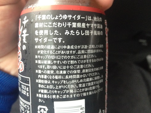 千葉のしょうゆサイダー 飲んでみた コメントを残す Tweet Pocket 君津の道の駅 きみつふれあいパークで購入! 千葉と言えば、醤油の名産地でもあるわけですが まさかこんな飲み物があるなんて…… 味としては、喉越しはなかなか気持ちが良い! そして後味は、砂糖醤油! 砂糖醤油を薄めて炭酸にしたような感じで、意外と飲めます ただ、ちょっと量が多いので、後の方になるとだんだん飽きてきますねw 温くなるとかなり不味いので、冷たいうちに一気に飲み干しましょう