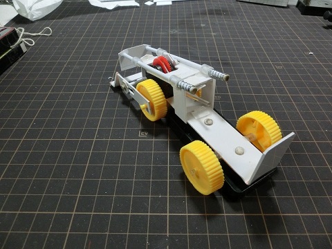 らいおんさん製フリックス「ホイールドーザー」 コメントを残す Tweet Pocket これは、まだ試作段階か……? しかし、斬新なコンセプトの機体だぞ!! 一見するとただタイヤが付いて機動力を高めているだけのように見える機体だが なんとこのフロント部分に曲者ギミックが搭載されている! なんと、ゼンマイによる駆動と連動して フロントウェポンが前後振動するのだ! 動画 まさにこれはクラッシュギア! フリックス・アレイの新たなる攻撃ギミックの可能性が垣間見えたぞ! CM