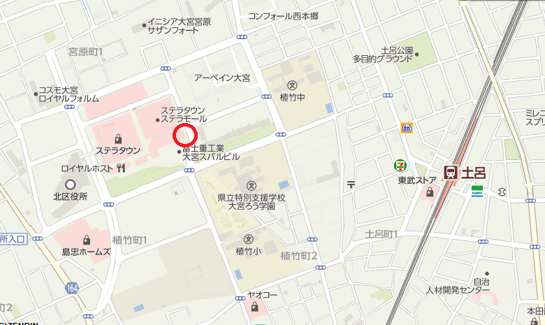 土呂駅から無料送迎バスが出ており、そのバス停とも近いので利用されると分かりやすいと思います