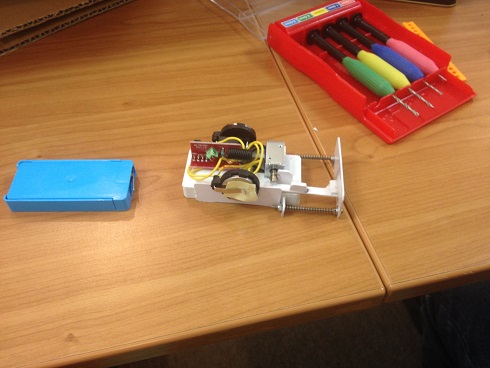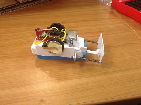 左の分離パーツのバネギミックをアクチュエーターによって作動させる