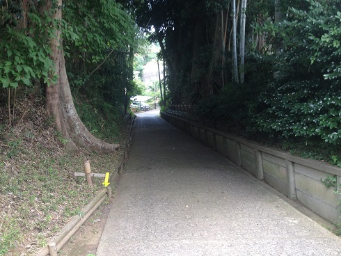木々で光が遮られ、まるで洞窟のような闇に包まれた坂です
