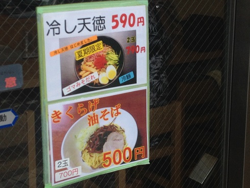 味の天徳 冷やし天徳二玉 食べてみた コメントを残す Tweet Pocket 油そばでお馴染みの味の天徳が、冷やし麺を始めてました ちなみに、普通の油そばは一玉490円で二玉740円 それにたいして冷やし天徳は、一玉590円ですが、二玉だと790円 二玉になった時の値段の増加率が少ない! なので二玉を注文 冷やし中華らしく、酸味の効いたタレに、油そばの油が麺をしっかりコーティングしているので つるつると心地の良いのど越し! そして、冷やし麺ならではの歯触りがいいですね ニンニクとラー油をかけると、タレの味が引き締まっていい感じです CM