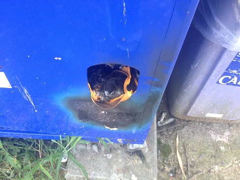 油か何かを注いでライターで火をつけたのでしょうが