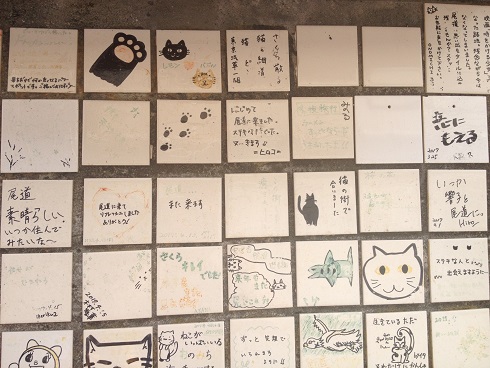猫の細道にある幼稚園の塀には、メッセージボードと言うかタイルに観光者のメッセージが描かれていました!