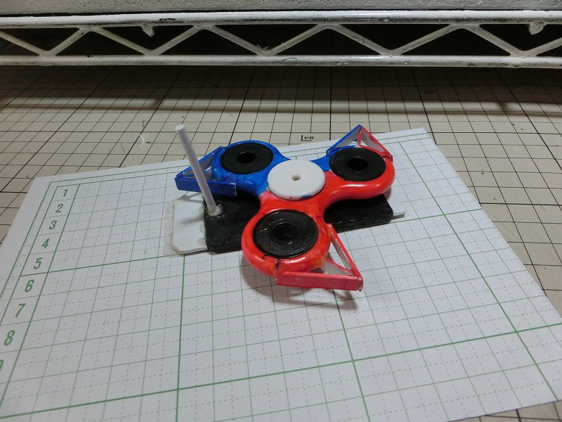 ライオンさん製フリックス 「ギーロ2号」 コメントを残す Tweet Pocket スピンパニッシャー ガトリングジャイロ と次々と登場したハンドスピナー機体に触発されて 自作ハンドスピナーを搭載して登場したギーロ しかし、やはり自作するよりも市販のものを使った方が効率がいい! って事でギーロ2号は市販のハンドスピナーを搭載! ヒート・トリガー!!と思わず叫びたくなるようなカラーリングw ただ市販のハンドスピナーを搭載しているだけでなく 攻撃型ベイブレードのようにカギ爪になるような改造も施されており、攻撃力を強化! 薄型のベースに載せて回転させる事で カギ爪による強烈な爆転アタックで敵機を刈り取る!!! CM