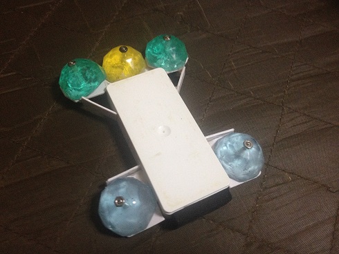 ユージン製フリックス「グラスホッパー」 コメントを残す Tweet Pocket 全く新しいバウンド素材を身に着けた機体は、こいつ~~!!! 前方に三つ そして後方に二つのスーパーボールの半球を搭載! 地味にバネと同様のバウンド効果を得ている! ストレートシュート時はフロントの スピン時は、リアのスーパーボールが敵を捉える! 接続方法は簡単 スーパーボールをカッターで半球にし、ネジ止め 素材的に接着剤や充填剤を使うのが難しい お祭りで手に入れたスーパーボールが余っている人は、是非とも作ってみてほしい一品だ! CM