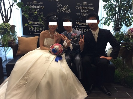フリックスを手に持って結婚式の記念撮影をする新郎新婦!!