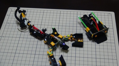 拘束パーツ分離時は、フロントウエポンシステムをシャーシに直接装備する事もできるが、自重が軽いため、攻撃力は期待できない