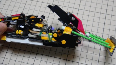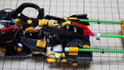 フロントに差し込みロックバーを下げる事で、蓄勢バネ攻撃が可能となる