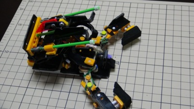 拘束形態の時はフロントウエポンシステムを機体の上部に取り付けて、カウンターウエイトとすることもできる(フィールドの安全な位置に配置してもよい)