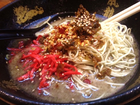 とんこつらーめん博多風龍 黒マー油ラーメン食べてみた コメントを残す Tweet Pocket 替え玉無料がありがたいとんこつラーメン屋です 新メニュー 黒マー油ラーメン! れんげで掬ってみると… 真っ黒な油! 麺に絡めて食べればこってりとした味が楽しめます! スープが暖かいうちに替え玉とトッピング入れまくり!! CM