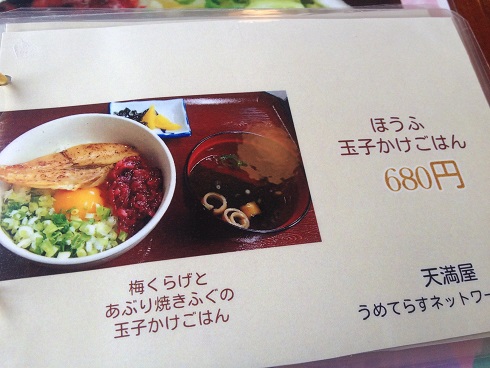 天満屋 ほうふ玉子かけごはん 食べてみた コメントを残す Tweet Pocket 防府天満宮の目の前にあるお土産屋さん、天満屋 あまり知られていないのですが、その2階は食堂になっているのです 2階から鳥居を眺める事が出来ます 賑わう外とは別に、静かな店内 ゆったりとお食事が可能です ほうふ玉子かけごはんを注文 料理が来た瞬間、豊かなフグの風味が鼻孔を擽りました 上品な漬物とお吸い物 やはりメインはフグですが 梅くらげがまたコリコリしてて美味い! こんな上品で贅沢な玉子かけごはんはなかなか食べられないな CM