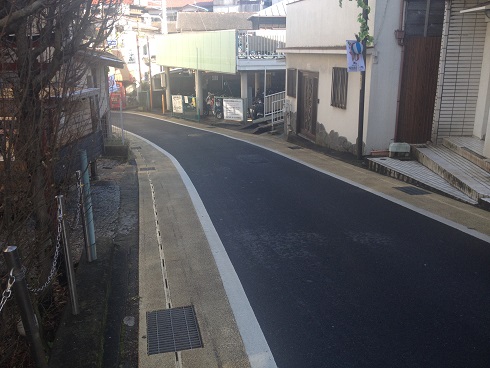 路地の坂道を降りたり登ったりして進むと……