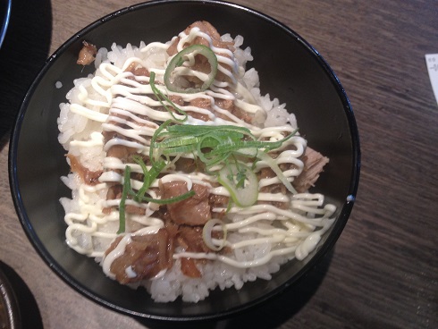 ご飯の上にチャーシューとたっぷりのマヨ!